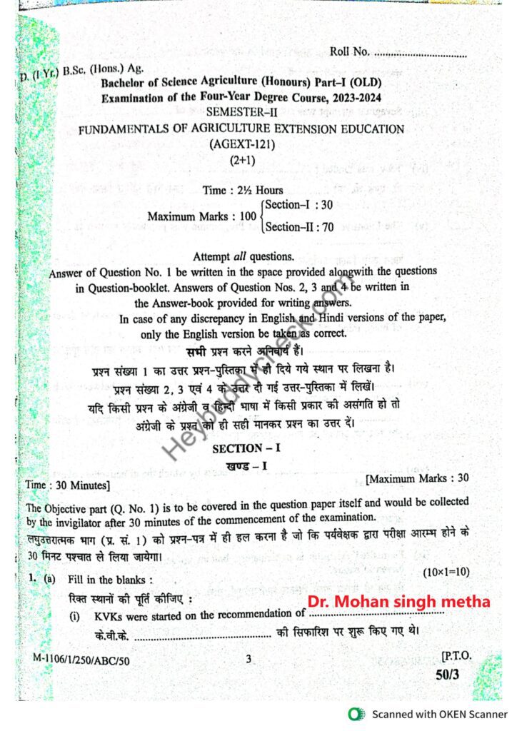 AGEXT-121 (Old paper) Fundamentals of Agricultural Extension Education AGEXT-121 Fundamentals of Agricultural Extension Education (Old paper) 2018-19 HEY Buddy March 31, 2024 0 min read 1