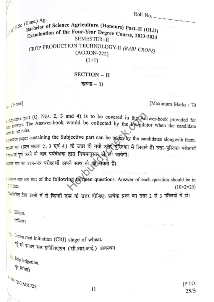 AGRON-222 (Old paper) AGRON-222 Crop Production Technology –II (Rabi Crops) (Old paper) 2023-24 (New) Hey Buddy May 5, 2025 10 min read 0