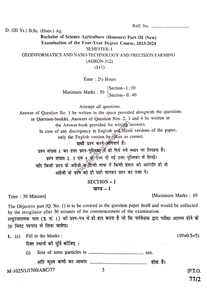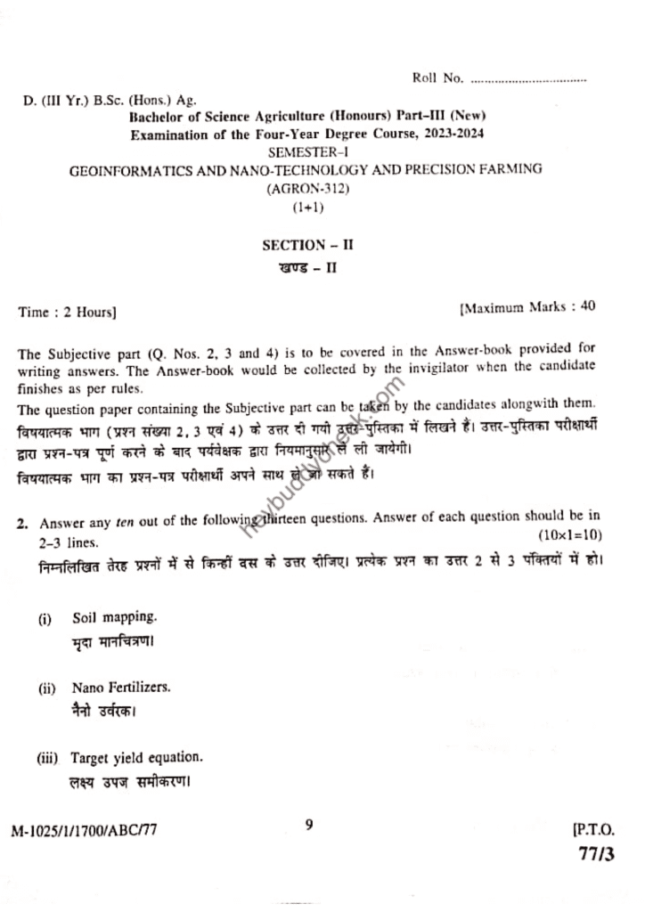 One thought on “AGRON-312 Geo informatics and Nanotechnology and Precision Farming (Old paper) 2023-24 (New)”