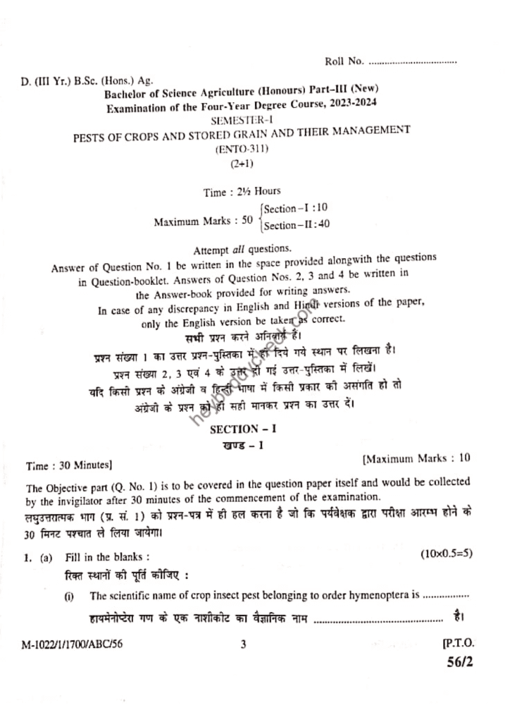 ENTO-311 (Old paper) Pests of Crops and Pests Stored Grain and their Management ENTO-311 Pests of Crops and Pests Stored Grain and their Management (Old paper) 2018-19 HEY Buddy September 27, 2023 0 min read 1