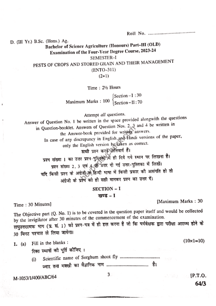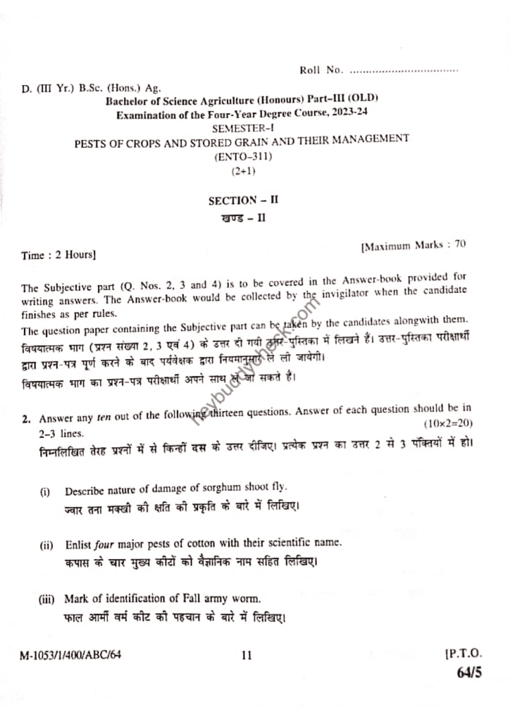 ENTO-311 (Old paper) Pests of Crops and Pests Stored Grain and their Management ENTO-311 Pests of Crops and Pests Stored Grain and their Management (Old paper) 2018-19 HEY Buddy September 27, 2023 0 min read 1