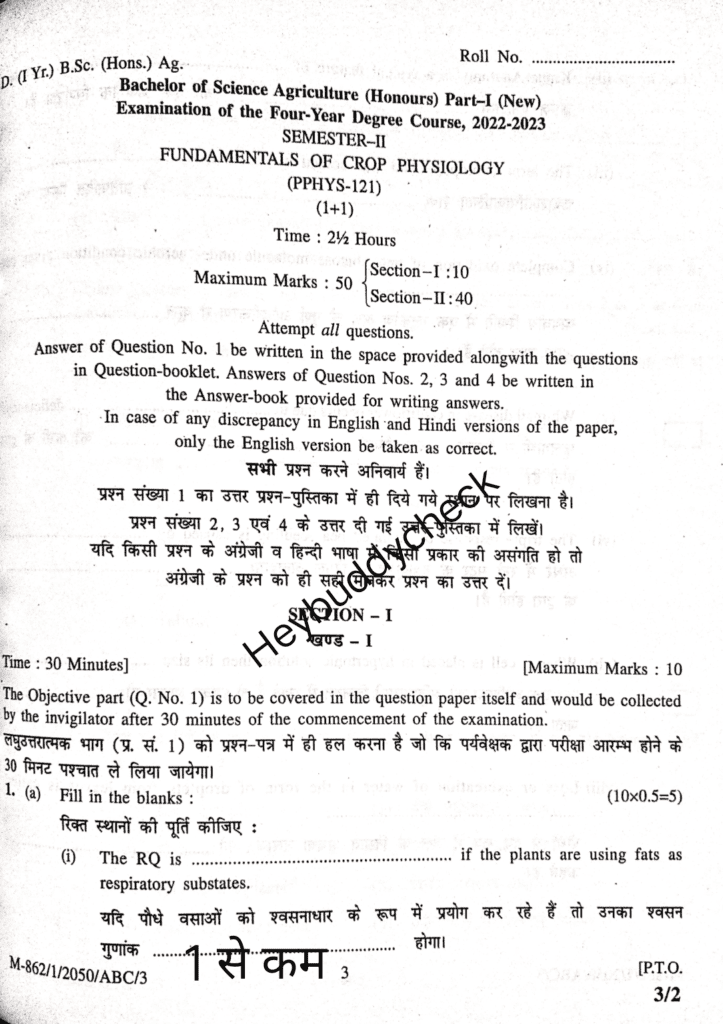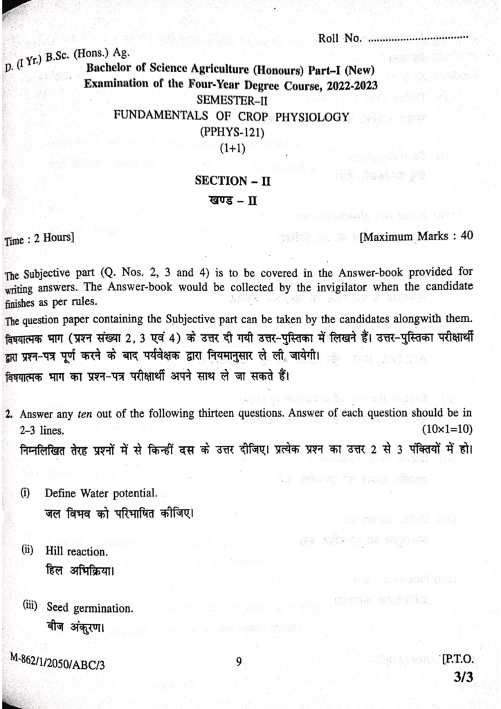 Fundamentals of Crop Physiology PPHYS-121 (Old paper) PPHYS-121 Fundamentals of Crop Physiology (Old paper) 2018-19 HEY Buddy March 30, 2024 0 min read 1