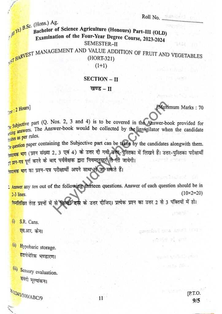 HORT-321 (Old paper) HORT-321 Post-harvest Management and Value Addition of Fruits and Vegetables (Old paper) 2023-24 NEW Hey Buddy May 30, 2025 0 min read 1