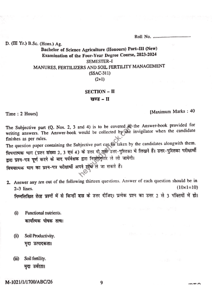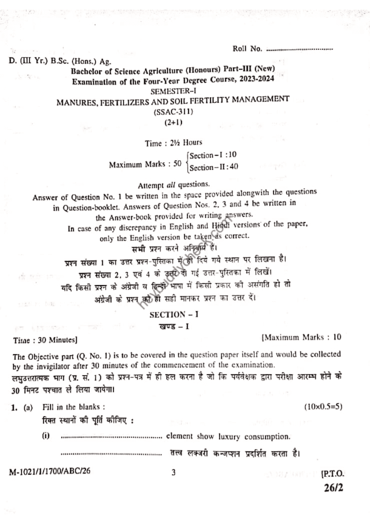 One thought on “SSAC-311 Manures, Fertilizers and Soil Fertility Management (Old paper) 2023-24 (New)”