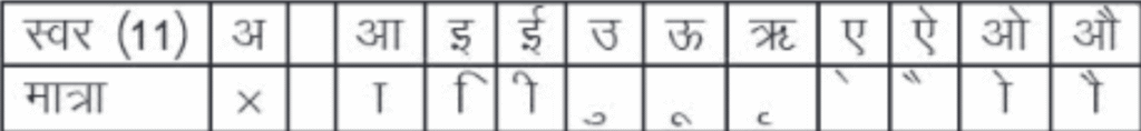 1. स्वर – वे वर्ण जिनके उच्चारण में वायु निर्बाध रूप (बिना किसी स्पर्श के) से मुँह या नाक द्वारा बाहर निकल जाती है उन्हें स्वर कहते हैं।
